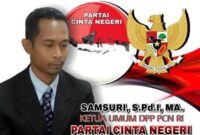 Jakarta | Sosok Pendiri sekaligus Ketua Umum Partai Cinta Negeri (Samsuri, S.Pd.I., M.A.) dideklarasikan sebagai Calon Presiden Republik Indonesia untuk Pemilihan Presiden (Pilpres) 2029…